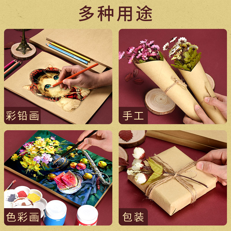 Yuanhao kraft paper A4 paper Painting special 4k 8k A3 cardboard cardboard color lead painting Sketch painting Art photocopy paper Voucher cover thick hard handmade wrapping paper yellow leather vintage binding cover