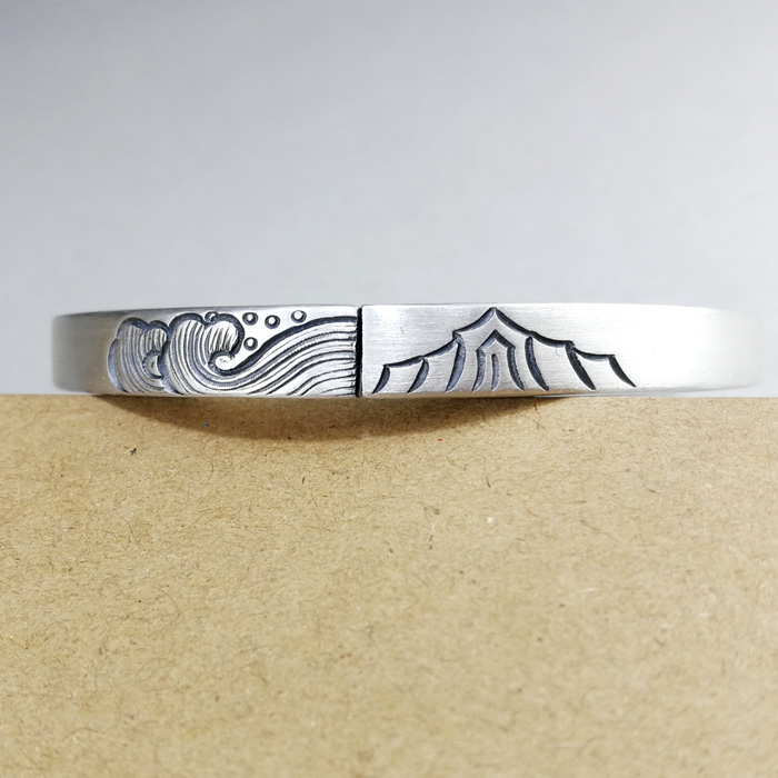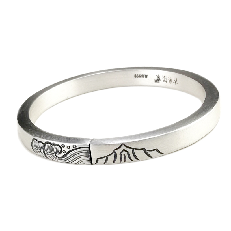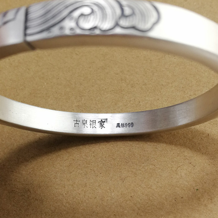 Ancient Springs Silver Family Silver Bracelet Foot Silver 999 Mountain Alliance Sea Oath Yunnan Snowflake Silver Square bracelet male and female couple lettering