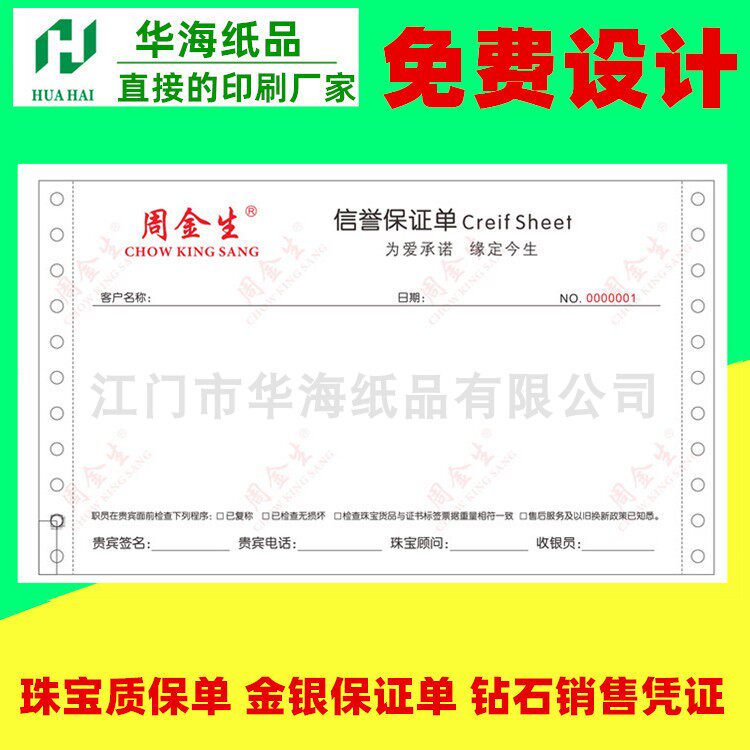 Triple Jewelry Elementary quantity guaranteed single printing press to beat gold jewelry after sale and guarantee card customized shipping Jiang Zhejiang Shanghai