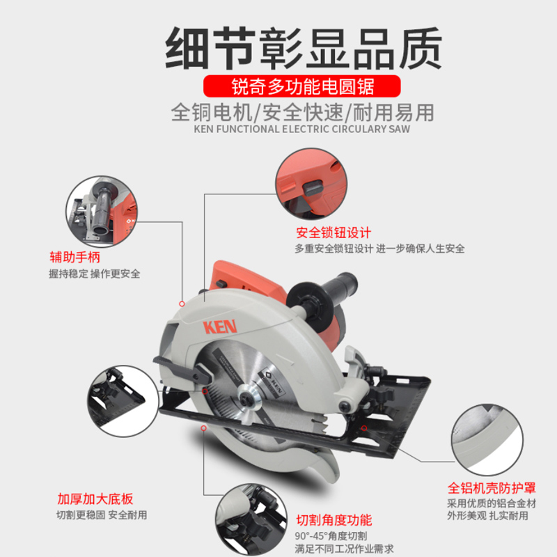 KEN Ruiqi circular saw machine 5639 woodworking cutting machine 2100w high power 9 inch push table saw Flip disc portable saw