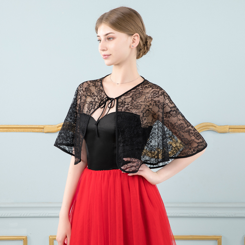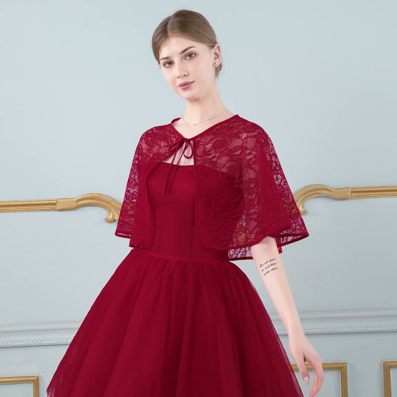 New Wedding Dresses Bridal Bridesmaid Gift Instrument Dress Cape Lace with Sleeves Horse Chia Spring Summer Black-and-white Grey Red