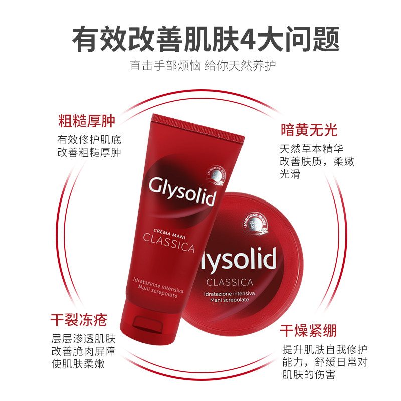 Italian original red hand cream imported Glysolid moisturizing moisturizing anti-crack strip round 100ml