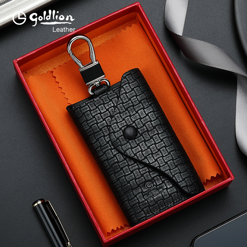 Jinlilai's new key bag men's leather casual multi-functional practical hanging waist top layer leather car key bag