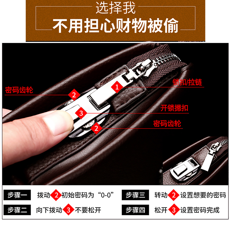 Genuine leather men's handbags Bull Leather Bag Business Hand Grab Bag Large Capacity Hand Clip Bag 2019 New Code Lock Men's Bag Bag
