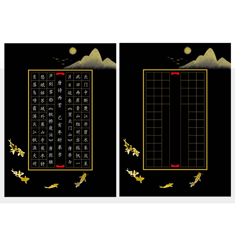 Black Hard Pen Calligraphy Paper Work Paper box Single section 20 Gg 28 Gg a4 Competition Special Paper Exercise Paper China Wind retro Thickened Elementary School Students Practicing Calligraphy Paper Black bottom White Words