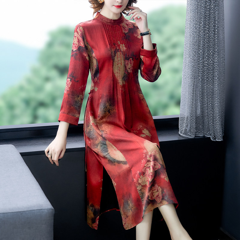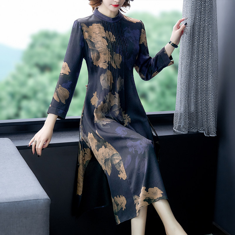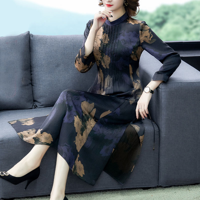 Improved version of cheongsam mother 2021 new large size women's spring and autumn high-end dress silk mulberry silk summer