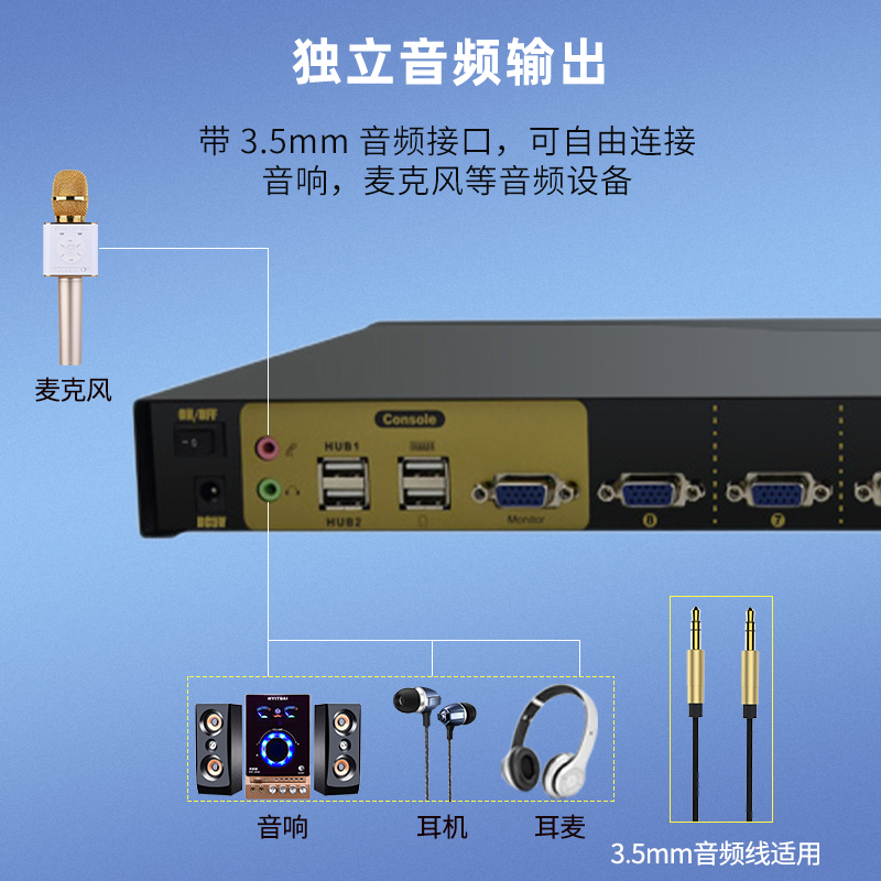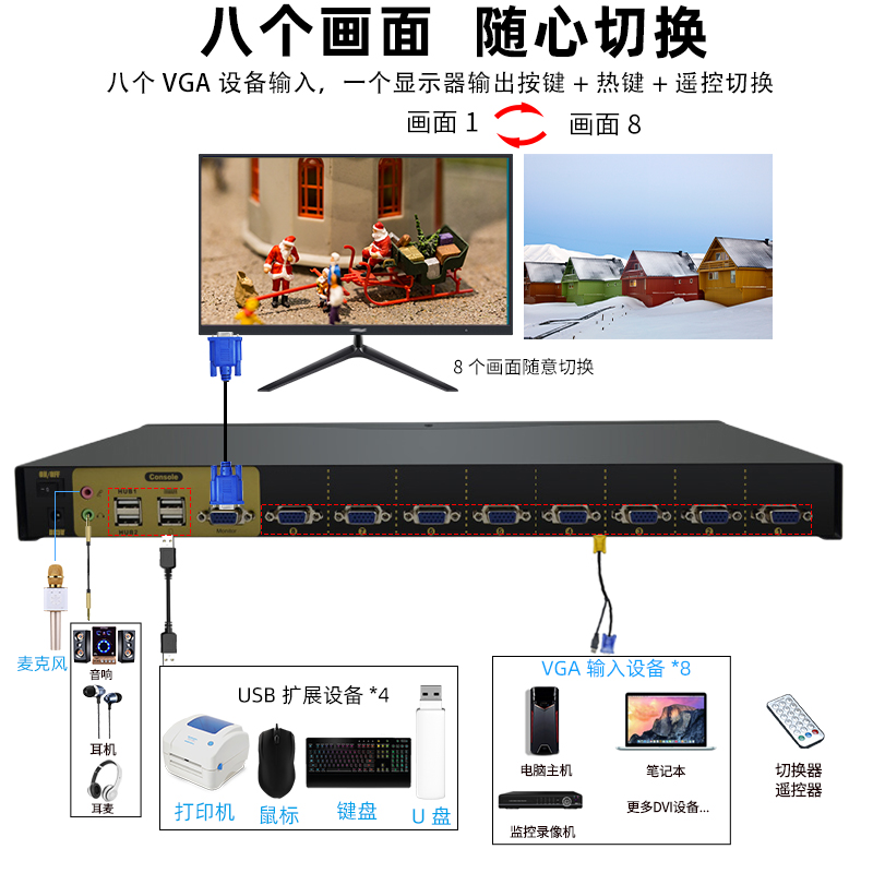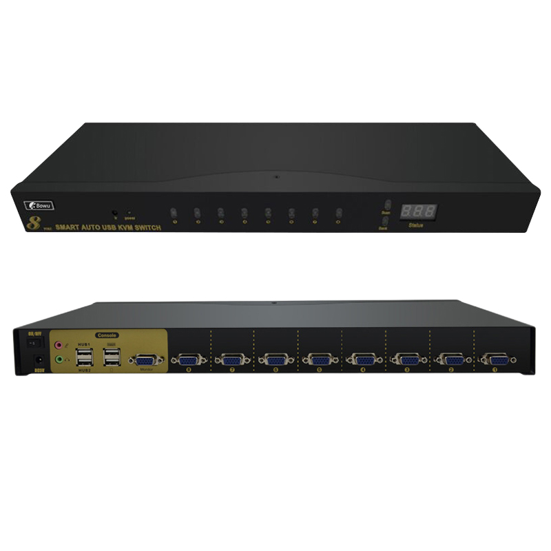 BOWU high-definition 8-mouth VGA KVM switcher 8 in 1 out of a multiple pen electric share key rat display film monitor cut screen vga conversion dispenser 8 in 1 out of keyboard switch