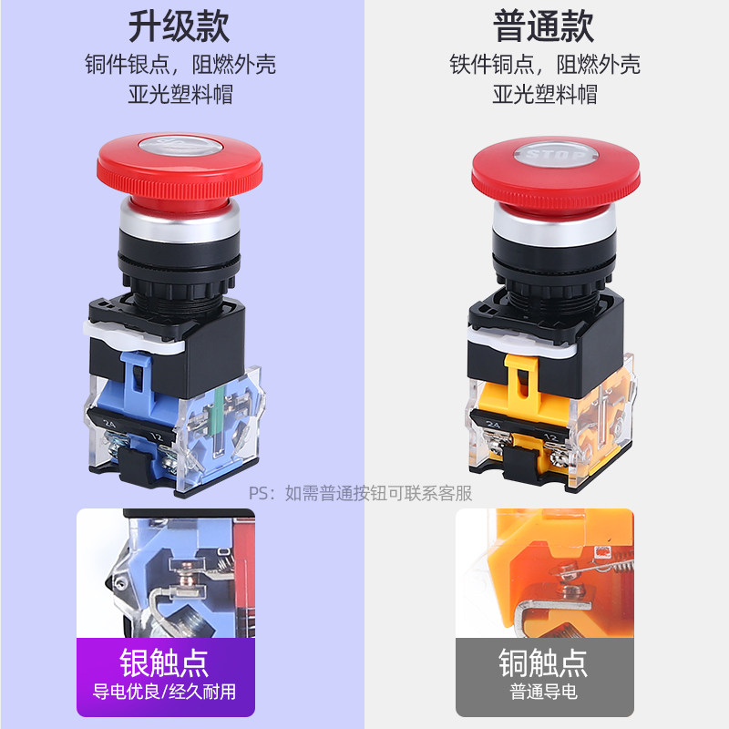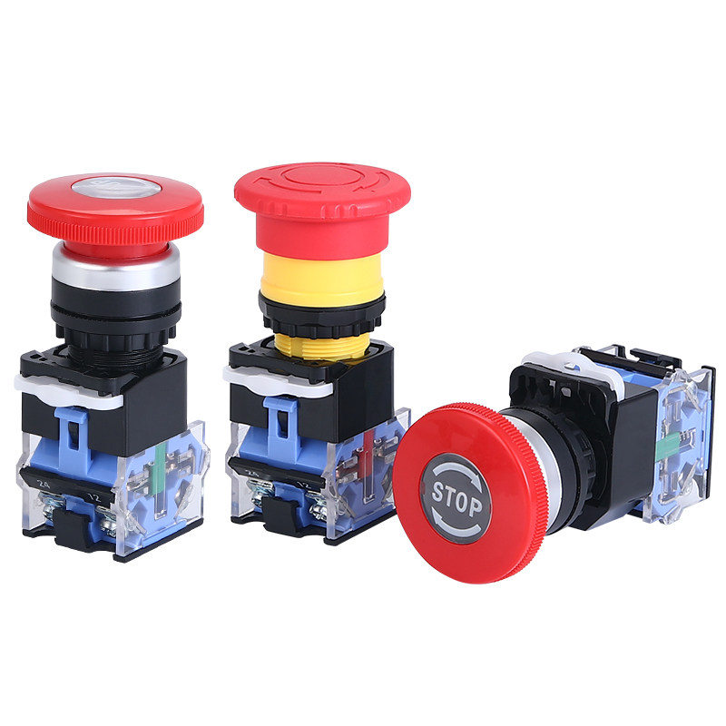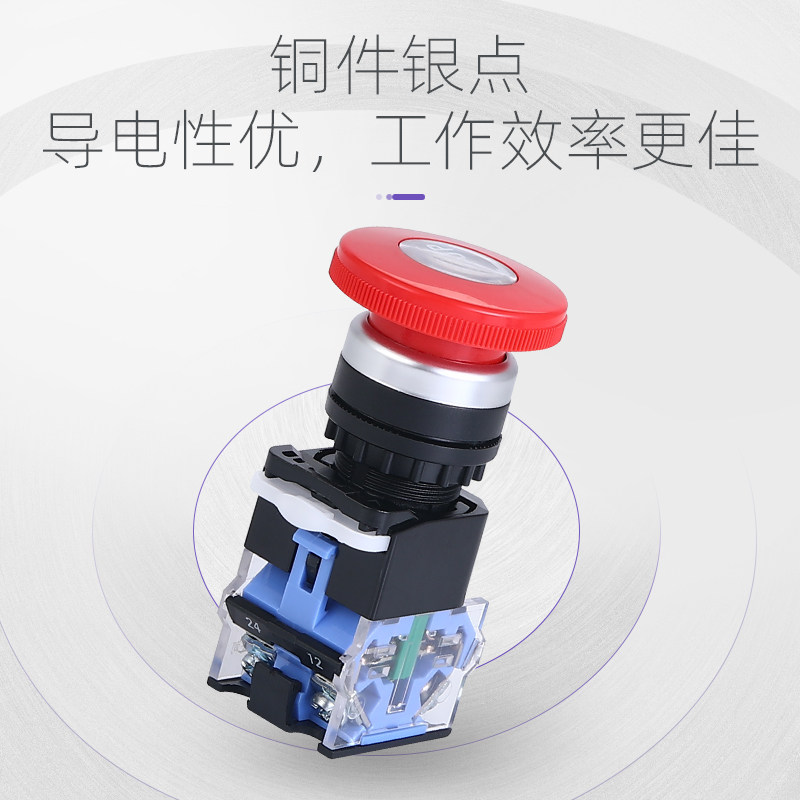 Cloud wise artisan emergency stop button switching power supply start stop LA38-11ZS self-lock emergency switch 22mm silver dot