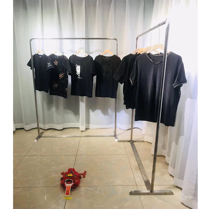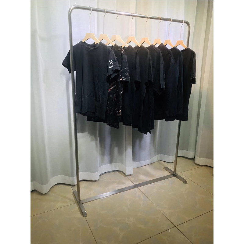 Korean version of women's clothing store clothes hanger floor-standing middle island rack on the wall side hanging stainless steel brushed silver display shelf
