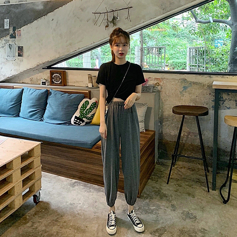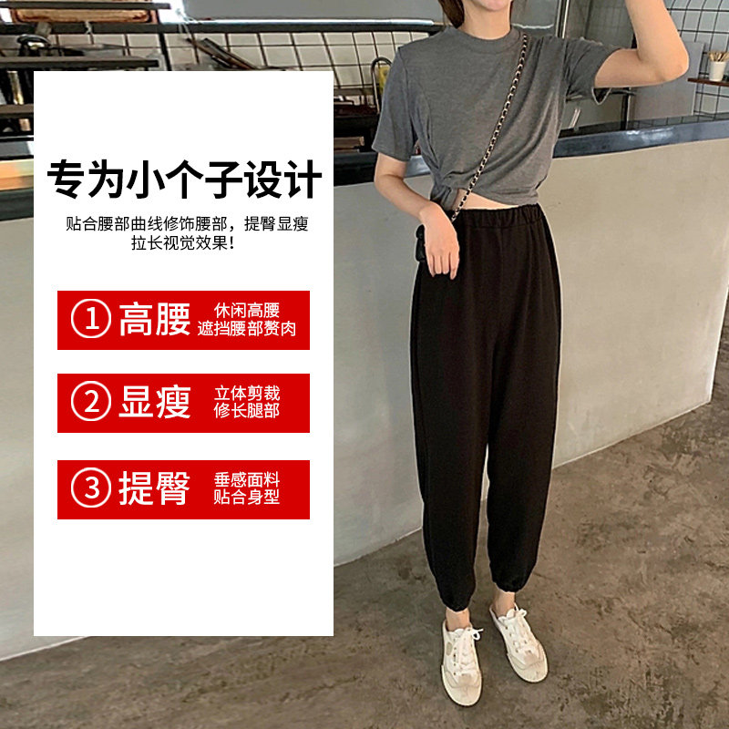 Spring 150cm small sweatpants women's spring and autumn loose beam feet gray short nine-point radish pants pants