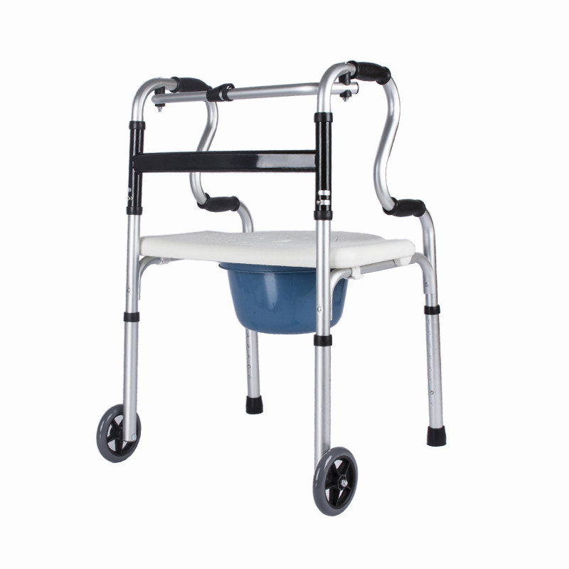 A2 aluminum alloy walker + elastic soft leather seating board + toilet bucket + casters + foot pads