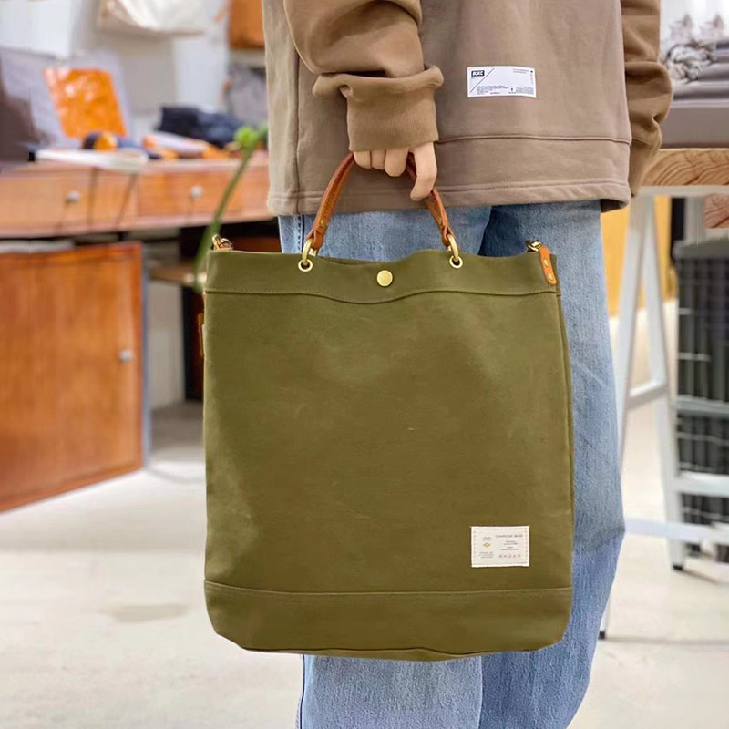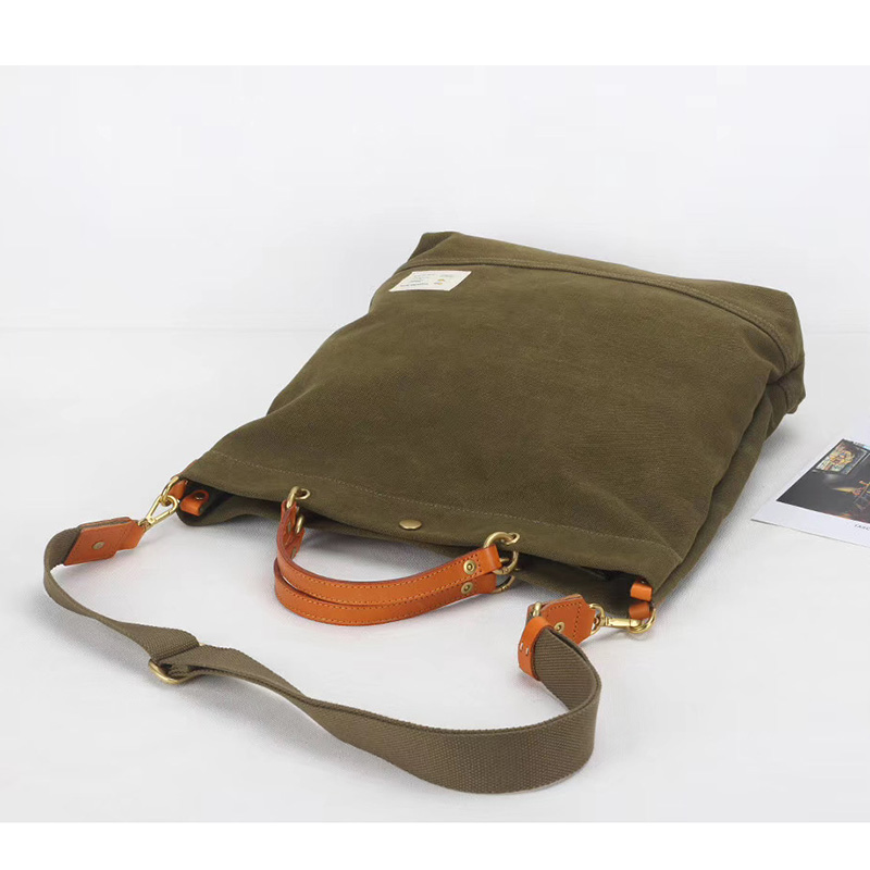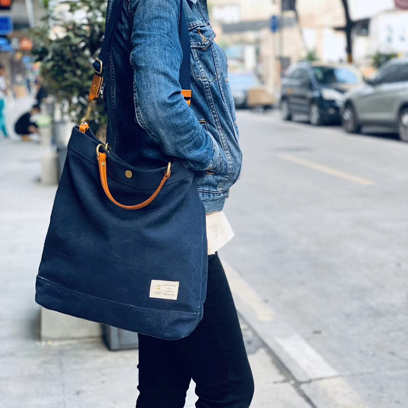 Shoulder bag women's messenger bag handbag canvas with cowhide retro casual street trend ins large capacity shoulder bag