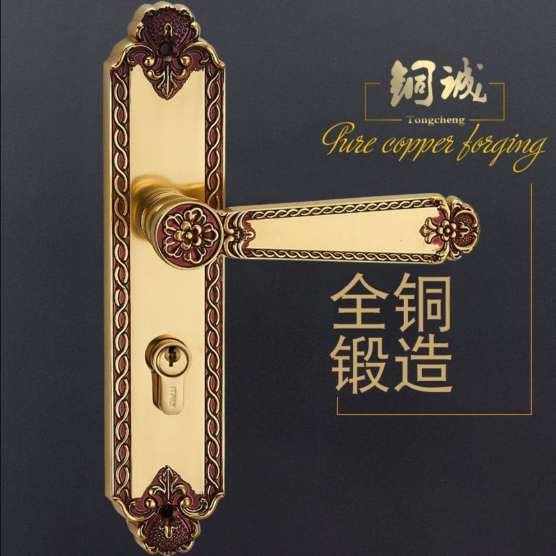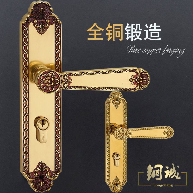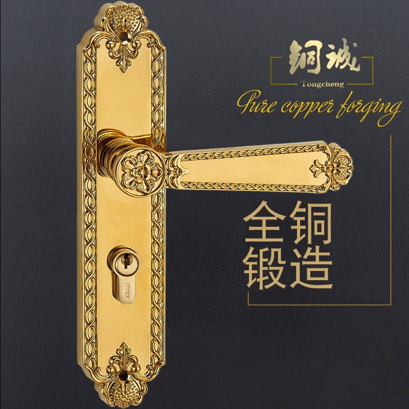 European gold fidelity lock a PVD gold real lock a European gold three-piece bronze hinge copper door suction PVD gold three pieces copper hinge copper door suction
