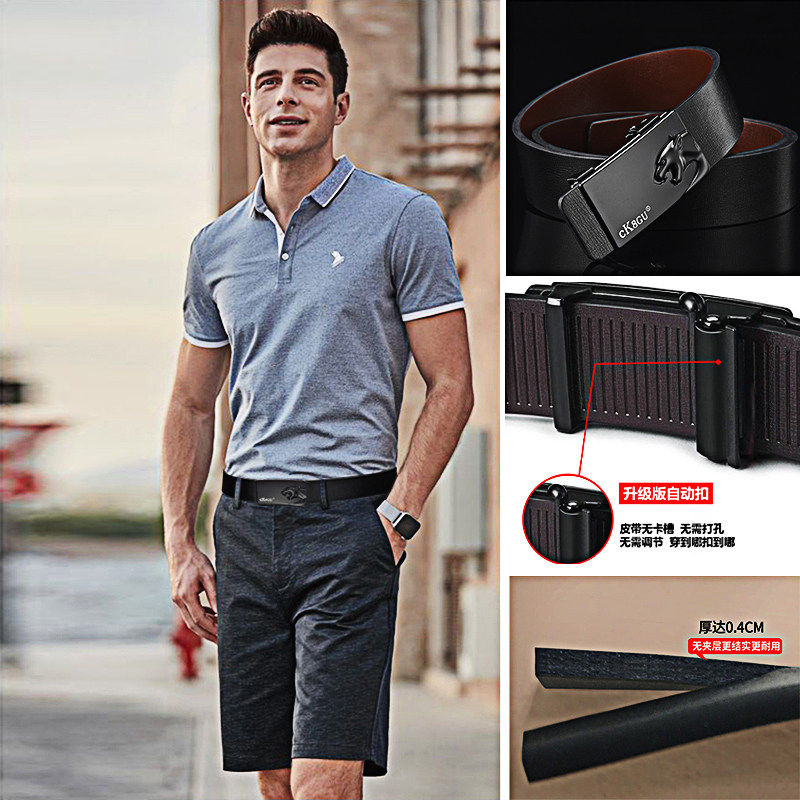 Toothless automatic buckle belt men's leather belt Korean version of young students' non-porous inner wear men's pants belt trend