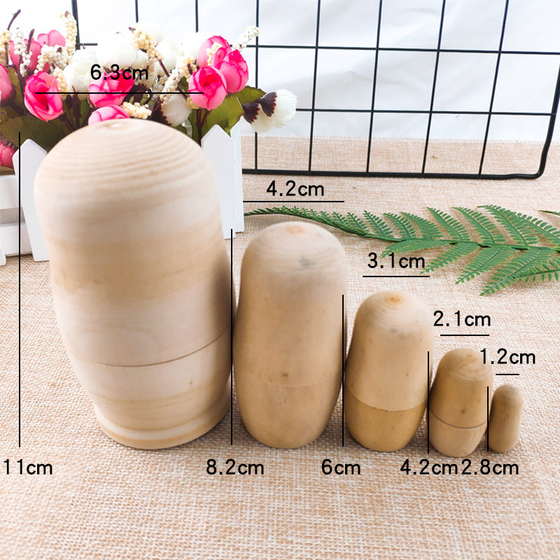 Xibao DIY hand-painted wood white embryo children's toy 5 layers Matryoshka doll doll graffiti painted travel crafts