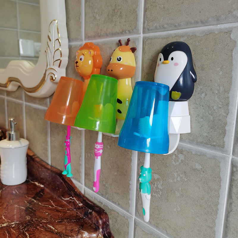 Children Toothbrush Rack Cup Rack Cartoon Wall-mounted Baby Creativity Anti-Fall Mouthwatering Cup Wash Bucket Tooth holder Family suit