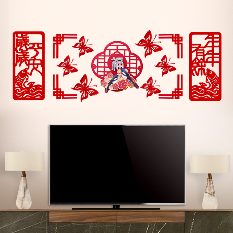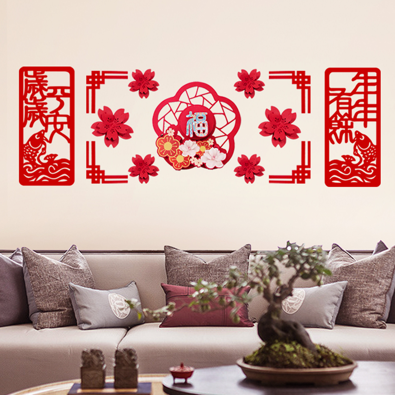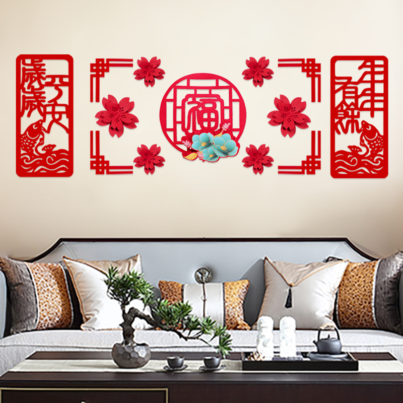 Zhuo Ce Three-dimensional Fu character couplet New Year decoration set Spring Festival New Year living room layout housewarming wall sticker pendant