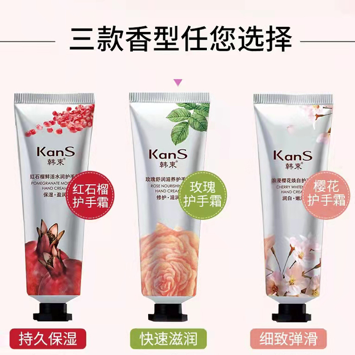 Han Shu hand cream three-pack female red pomegranate fresh water moist romantic cherry blossom autumn winter rejuvenation moisturizing hydrating gift box