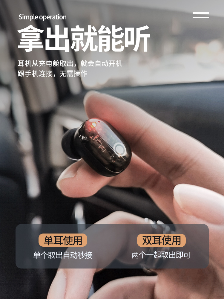 (Transparent) New double ear Bluetooth headphones Invisible In-ear Sports Men Running 5 0 Single ear True Wireless TWS with charging bin extra-long sequel standby for Apple Android 2021
