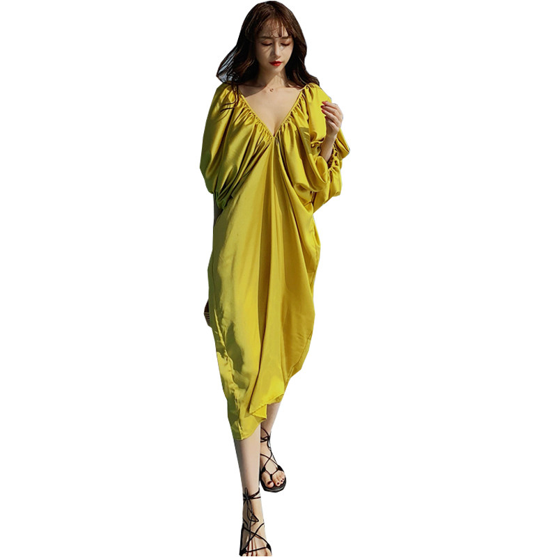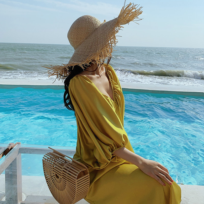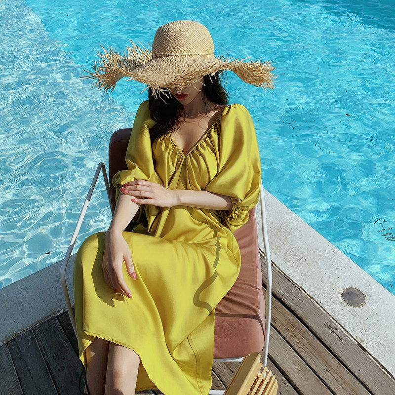 Satin retro beach skirt large size fat mm covering the flesh loose and thin maternity dress women's Sanya travel dress