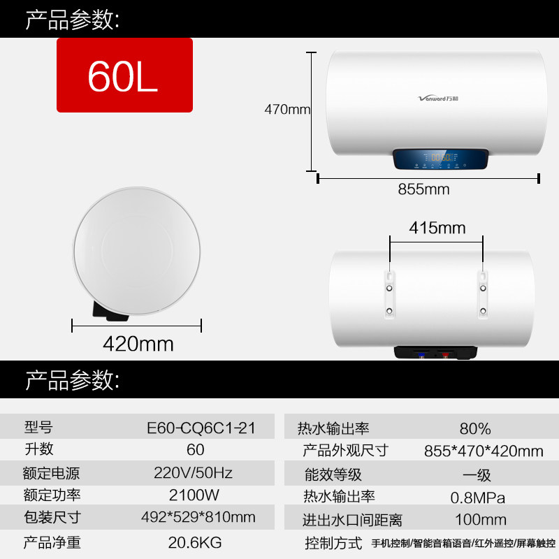 Wanhe electric water heater automatic power outage water storage 60 liters 80 liters type quick heat home toilet energy saving bath