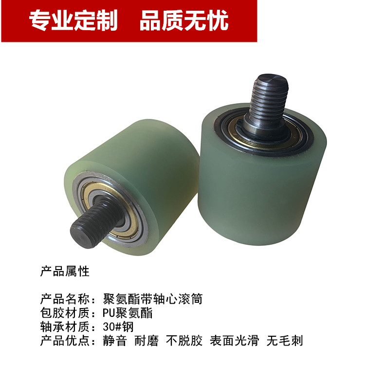 Polyurethane belt with axle center rubber wheel covered with rubber idler roller without power roller bearing PU conveying material wheel custom wear-resistant pressure wheel