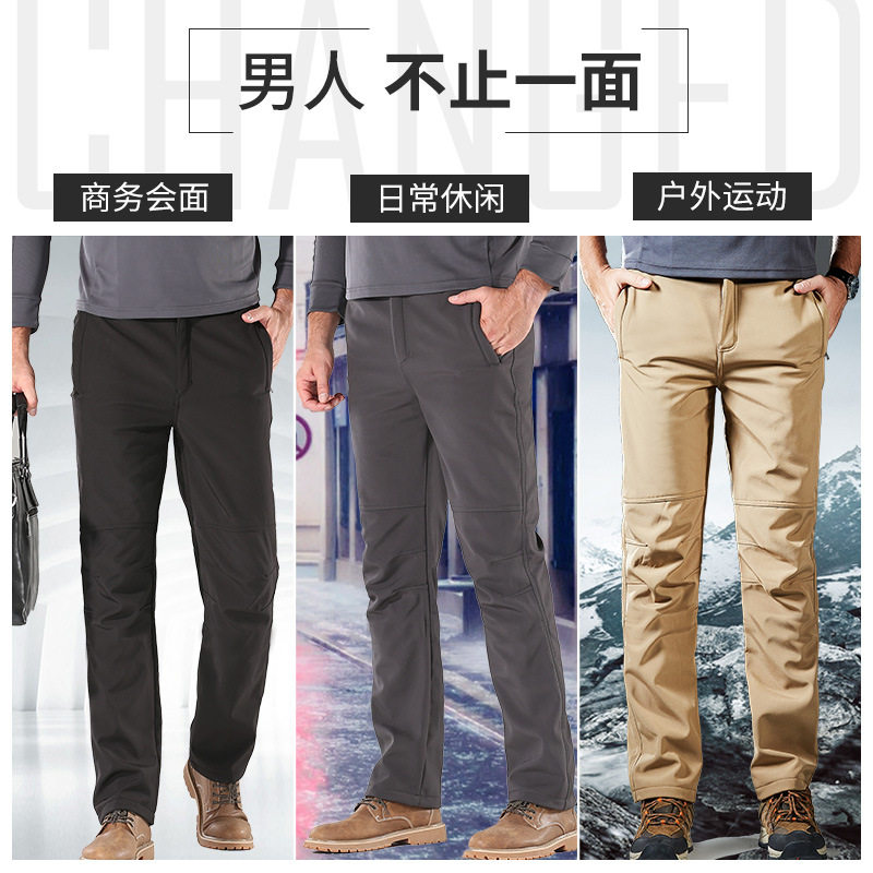 Punching pants autumn and winter men's warm and suede pants rocking grain velvet elastic waterproof outdoor punching pants anti-cold
