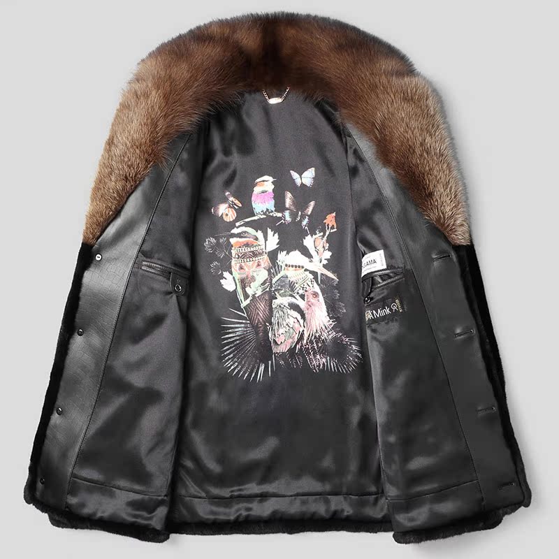 2019 new suit collar Long version imported black mink coat water mink fur coat man leather grass jacket thick