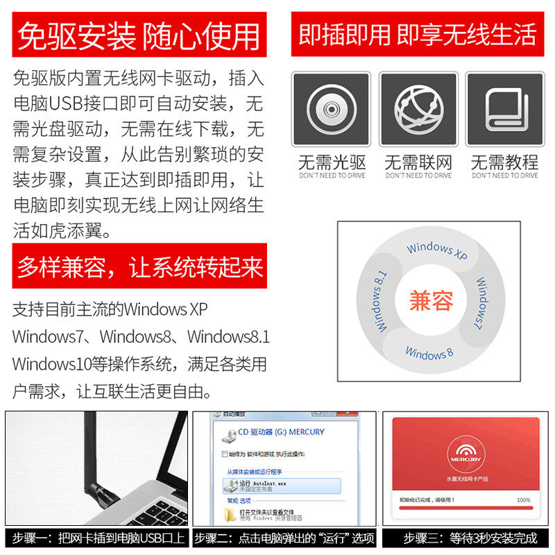 Mercury 5G driver-free dual-band USB Wireless network card Desktop laptop Laptop receiver