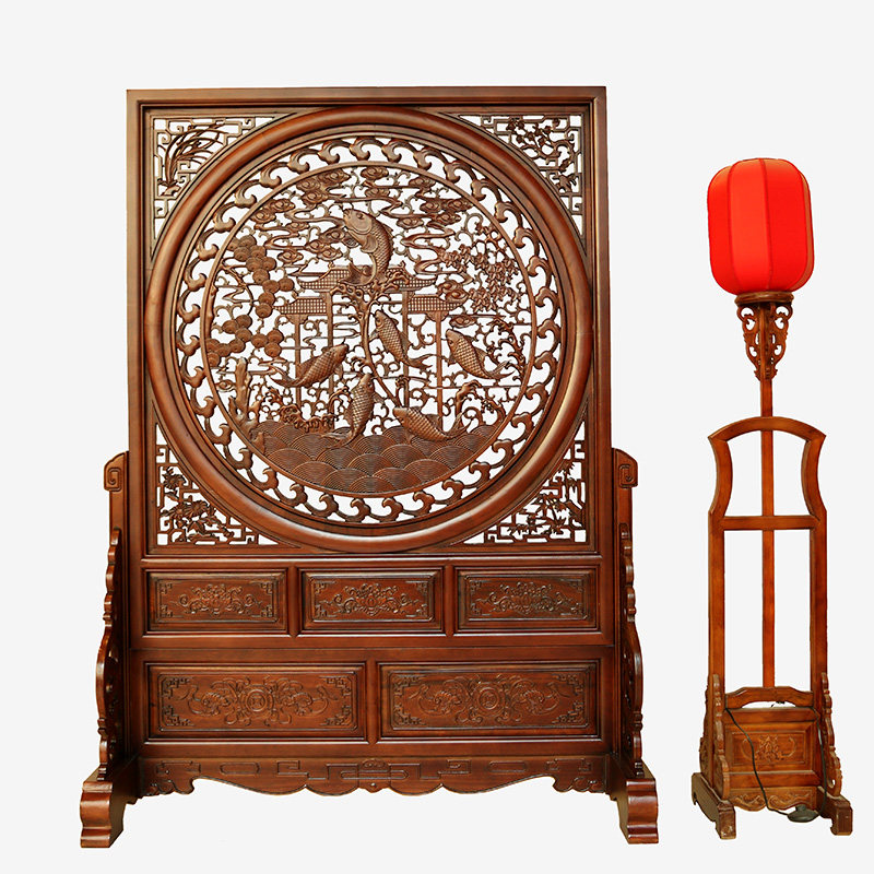 Living room partition screen solid wood screen seat screen Chinese double-sided carving hollow mobile entry porch cover customization