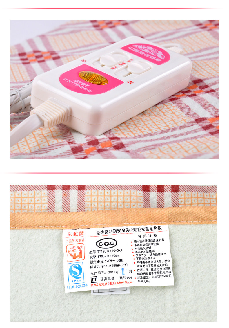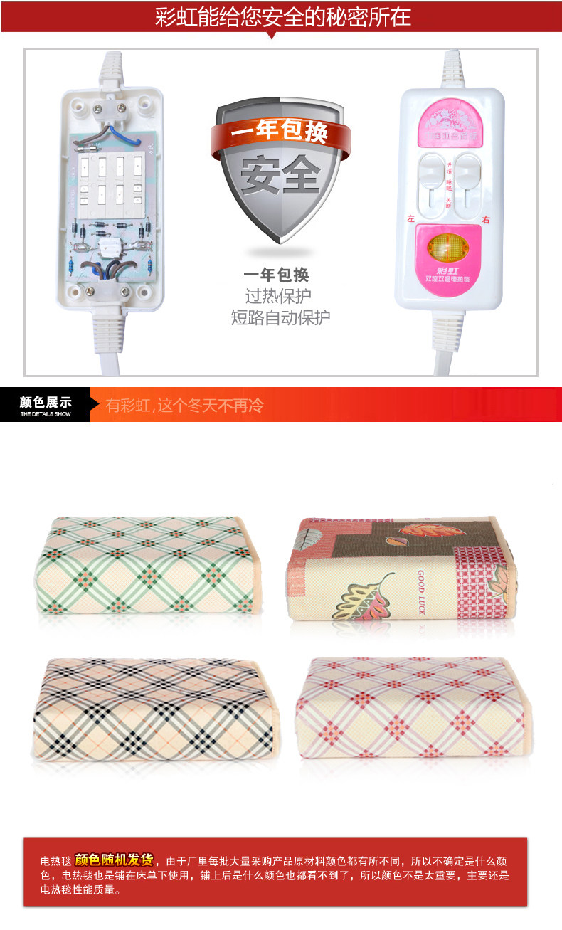Rainbow card electric blanket single double double cut thermoregulation 1326AA electric blanket without radiation waterproof 1201 home 06