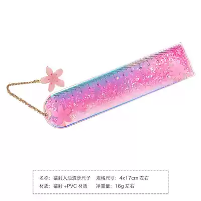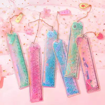 Oil quicksand book signature ruler cute laser girl ruler creative multi-functional student stationery scale