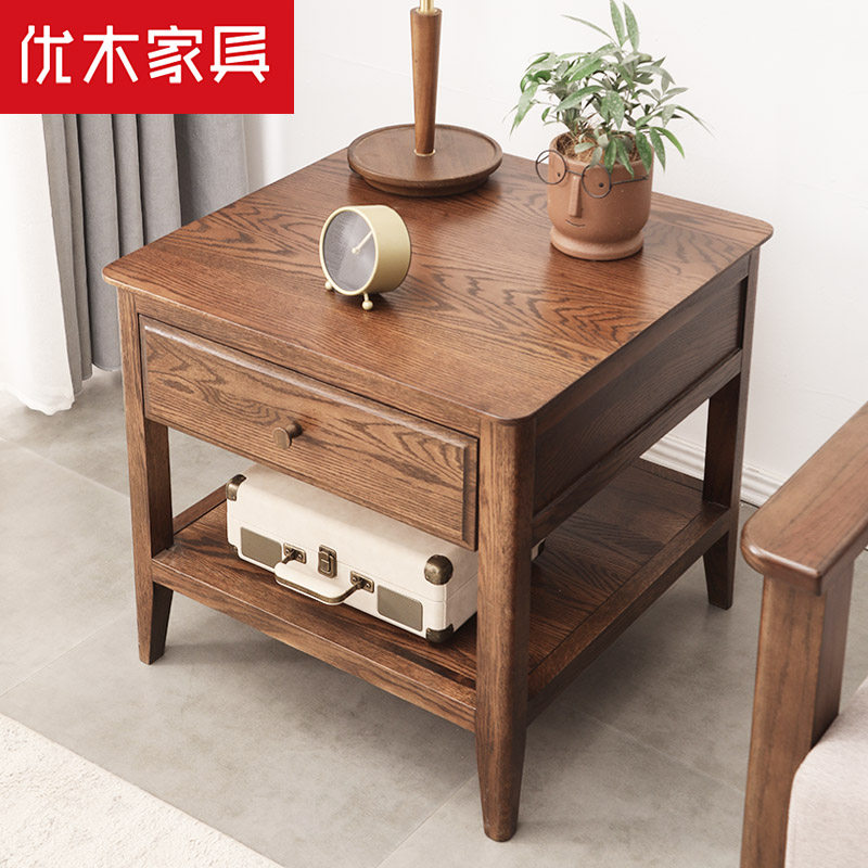 Excellent wood furniture pure solid wood square coffee table oak small coffee table living room sofa solid wood side table American living room furniture