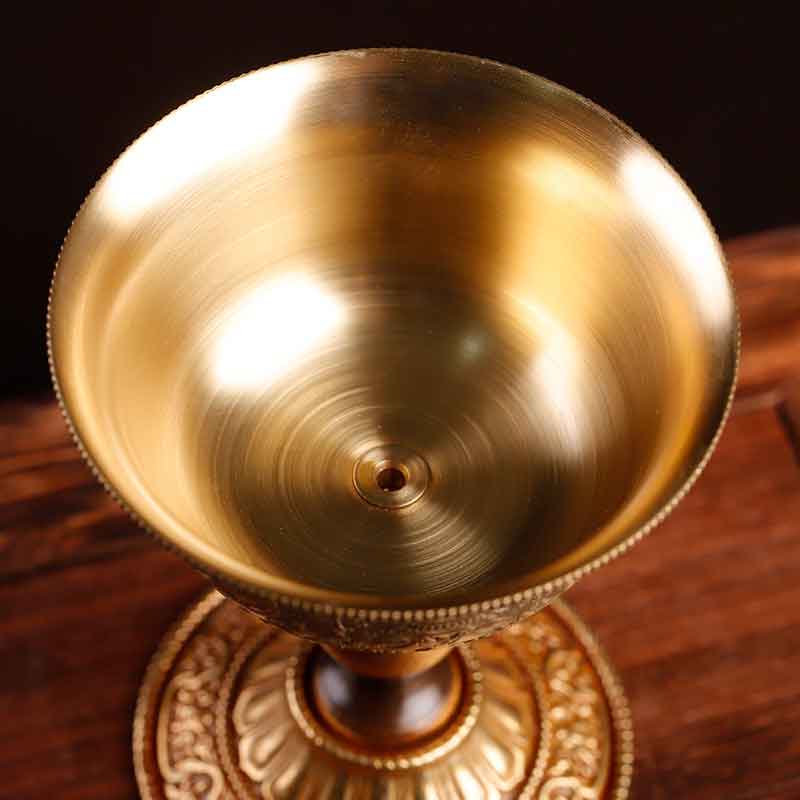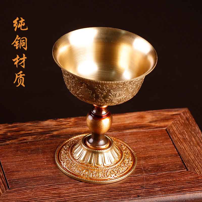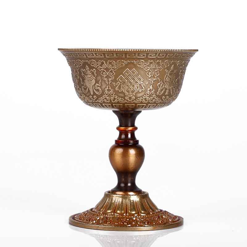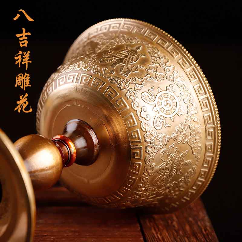 Tibetan supplies eight auspicious ghee lampholder carved high footer for Buddha lamphouse pure copper Nepal process