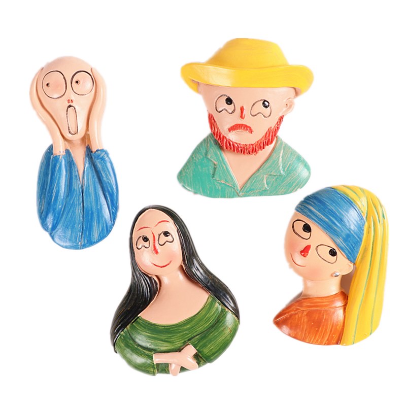 World famous painting figures (4) A set of Mona Lisa cries Van Gogh Spanish girl wearing pearl earrings, girl's swimming ring girl yoga boy dancer girl dancer girl