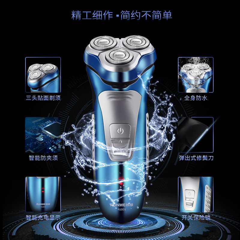Longway Razor Electric Razor Three-Headed Beard Knife Men's Whole Body Washable Smart Rechargeable Razor