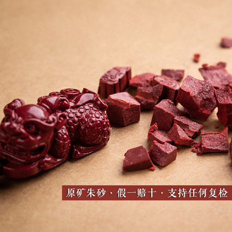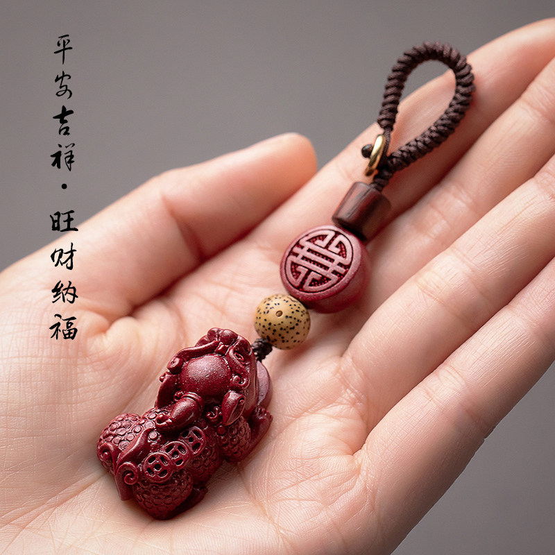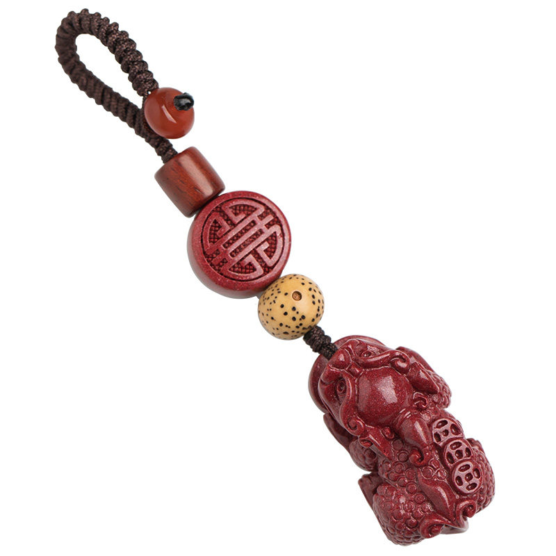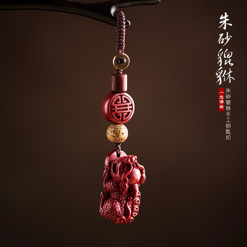 Natural cinnabar pendant keychain men and women send creative gifts cinnabar pixiu keychain to attract wealth and peace