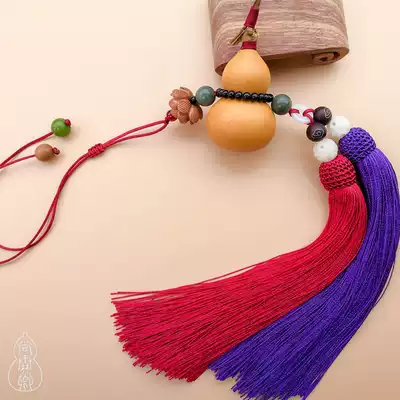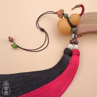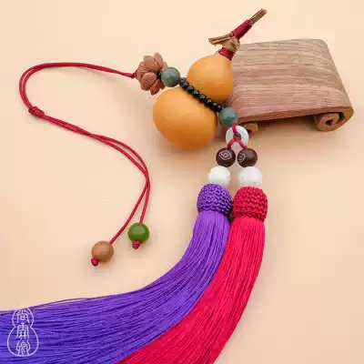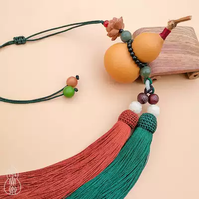Natural feng shui gourd private custom original handmade double long tassel wood Lotus home car decoration safety pendant