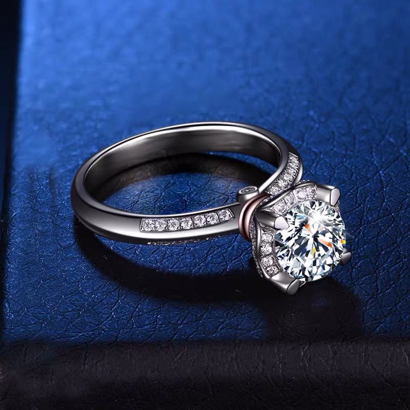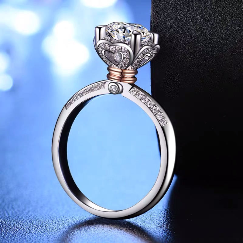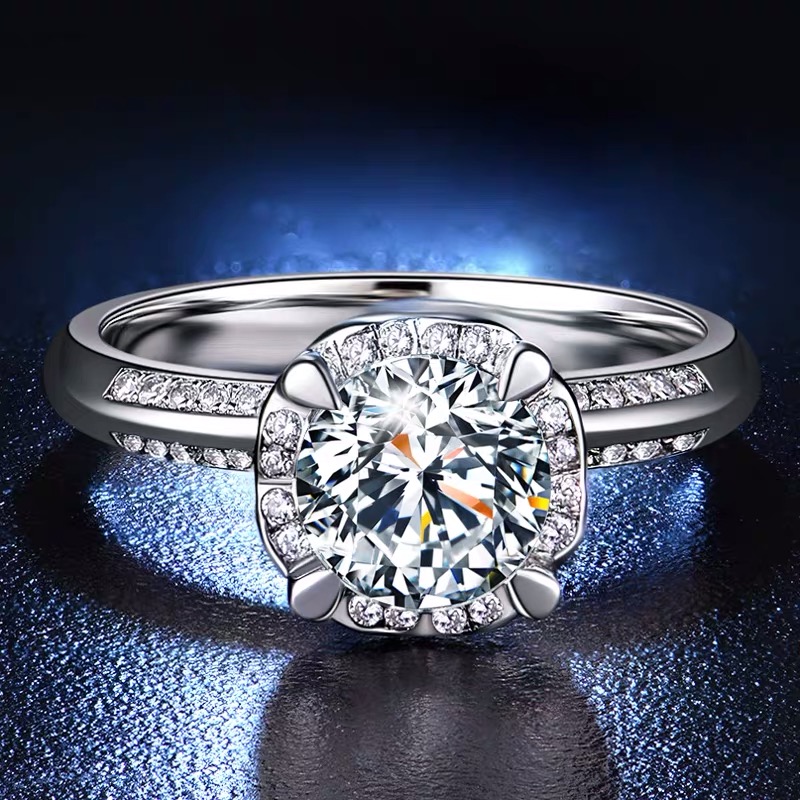 Platinum diamond ring female luxury flower wedding ring 1 carat simulated diamond D color imported moissanite ring female ring