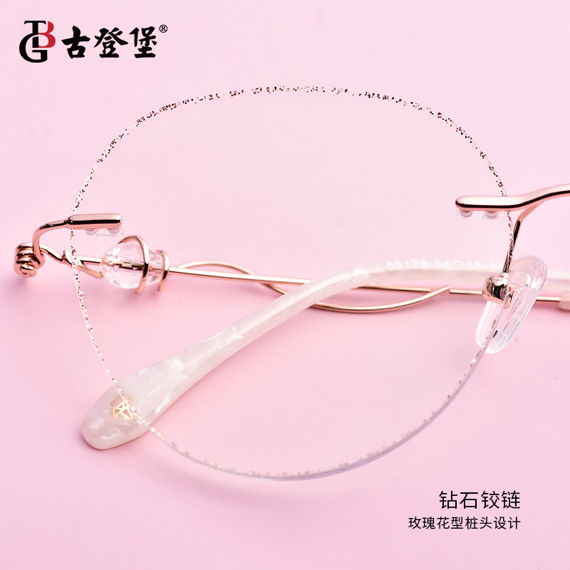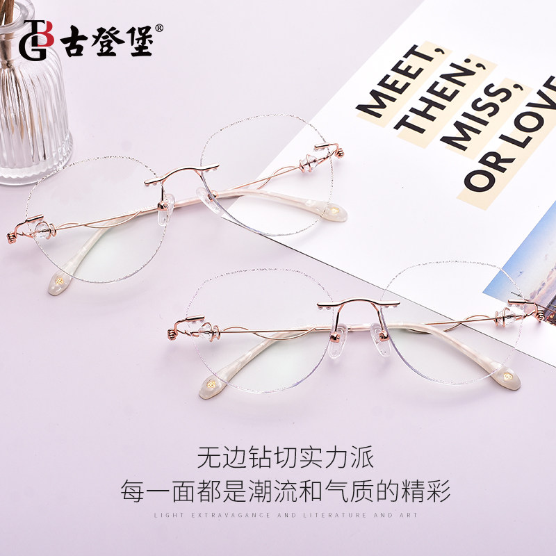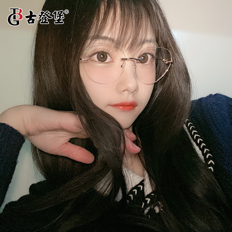 Myopia glasses female anti-blue light radiation degree can be equipped with frameless retro plain face artifact ultra-light pure titanium big face thin