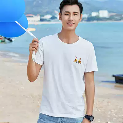 Hanska 2020 summer new cotton short-sleeved white T-shirt men's retro fashion brand personality fashion printed T-shirt