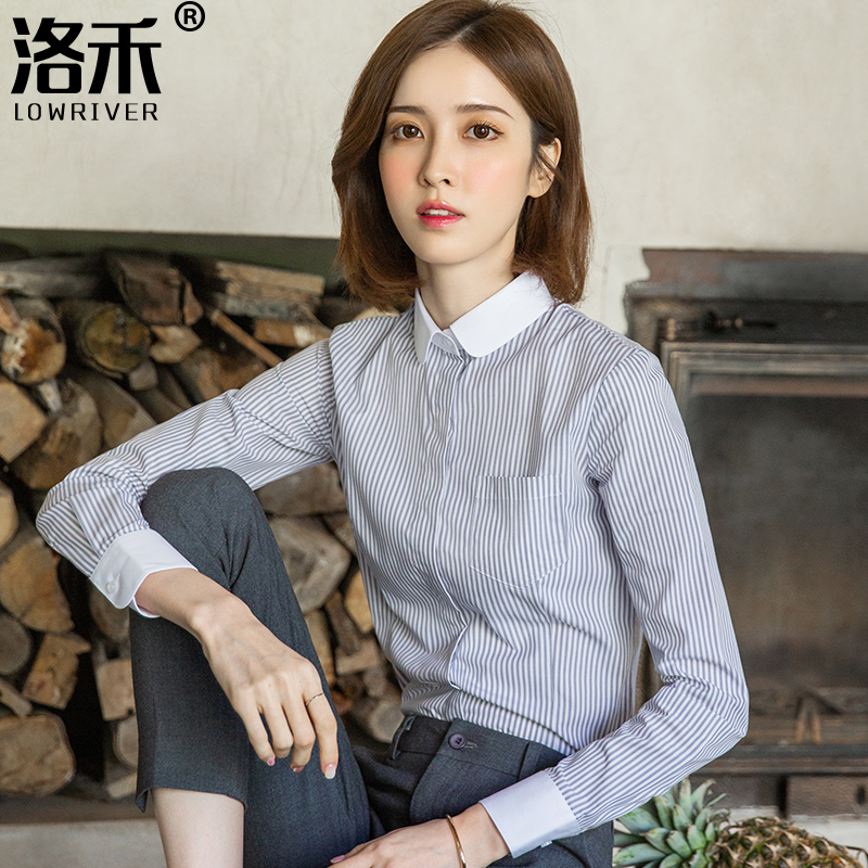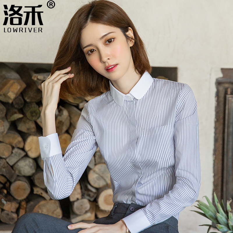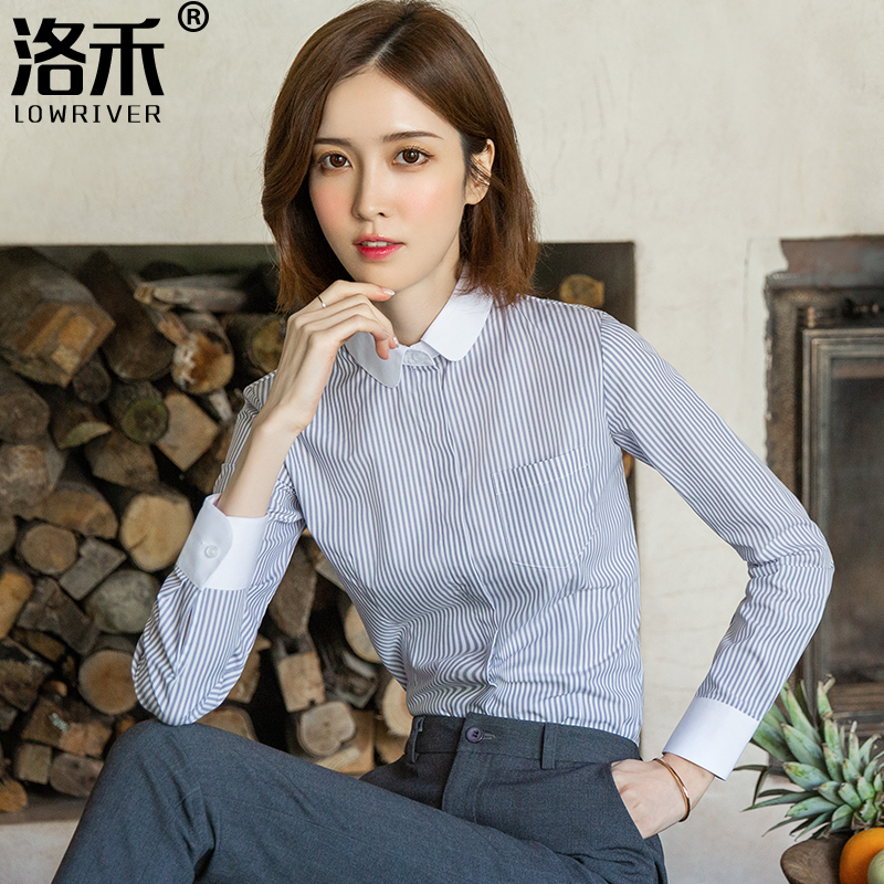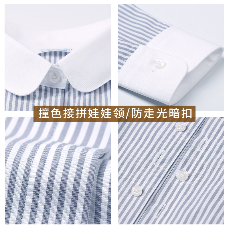 Doll collar black and white vertical stripes professional temperament shirt women's long-sleeved 2021 spring new niche design shirt