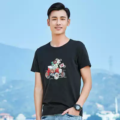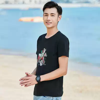 Hanska 2021 Spring Summer new chest flower print short sleeve T-shirt male Korean student T-shirt half sleeve tide