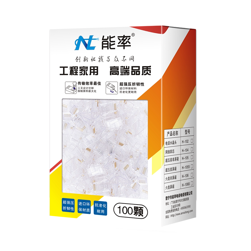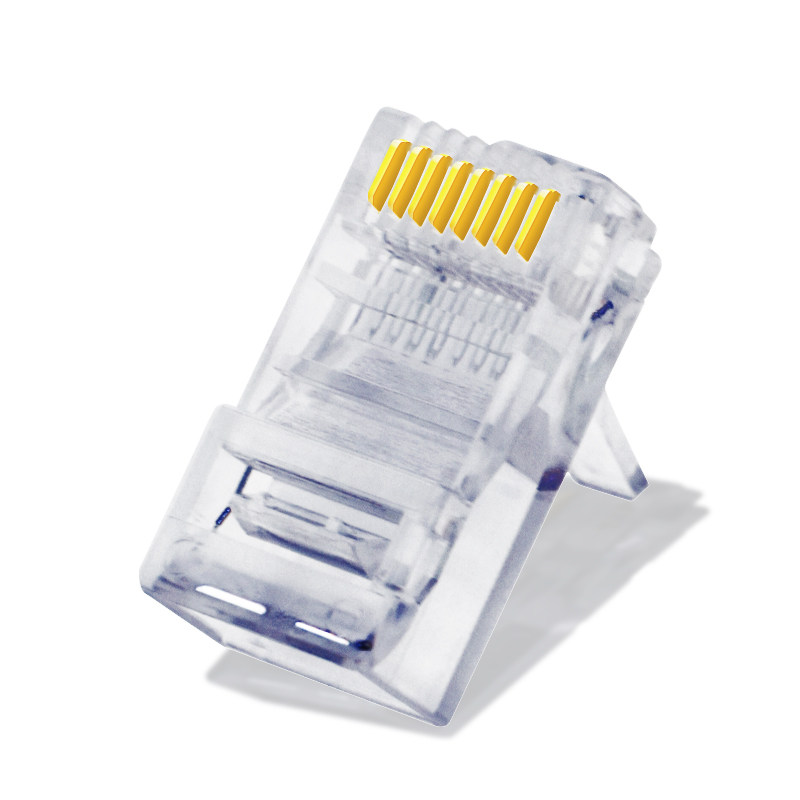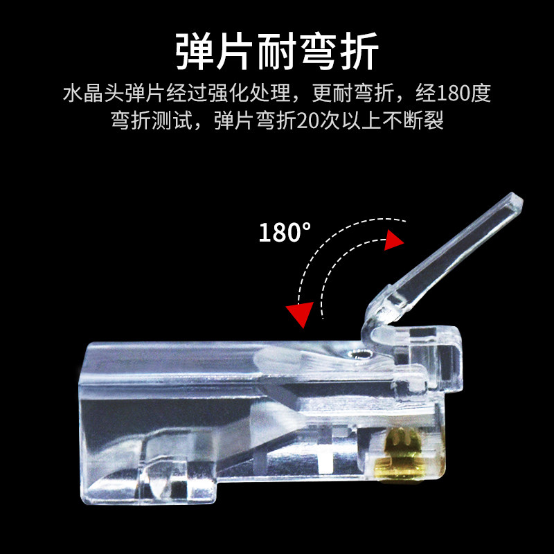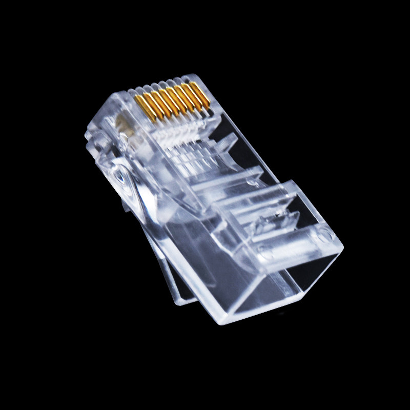 Super five category 5 RJ45 computer network unshielded crystal head 8P8C pure copper three-pronged chip network line connector 100