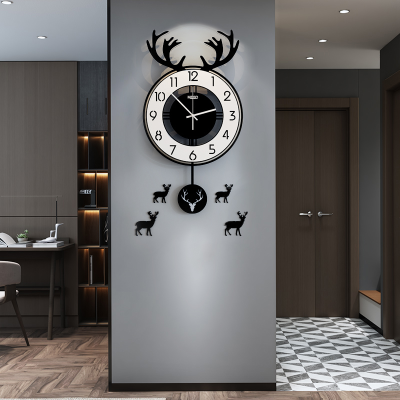 Nordic deer head clock wall clock living room creative fashion home modern simple wall hanging wall net red light luxury personality clock