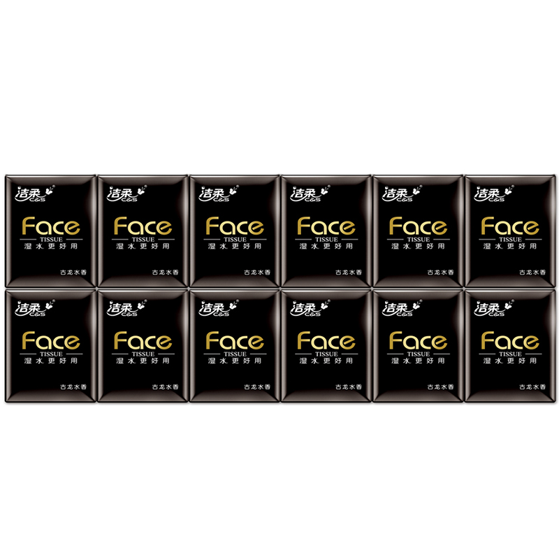 Jierou Face black face series cologne small bag portable mini handkerchief toilet paper wet water is better to use 12 packs