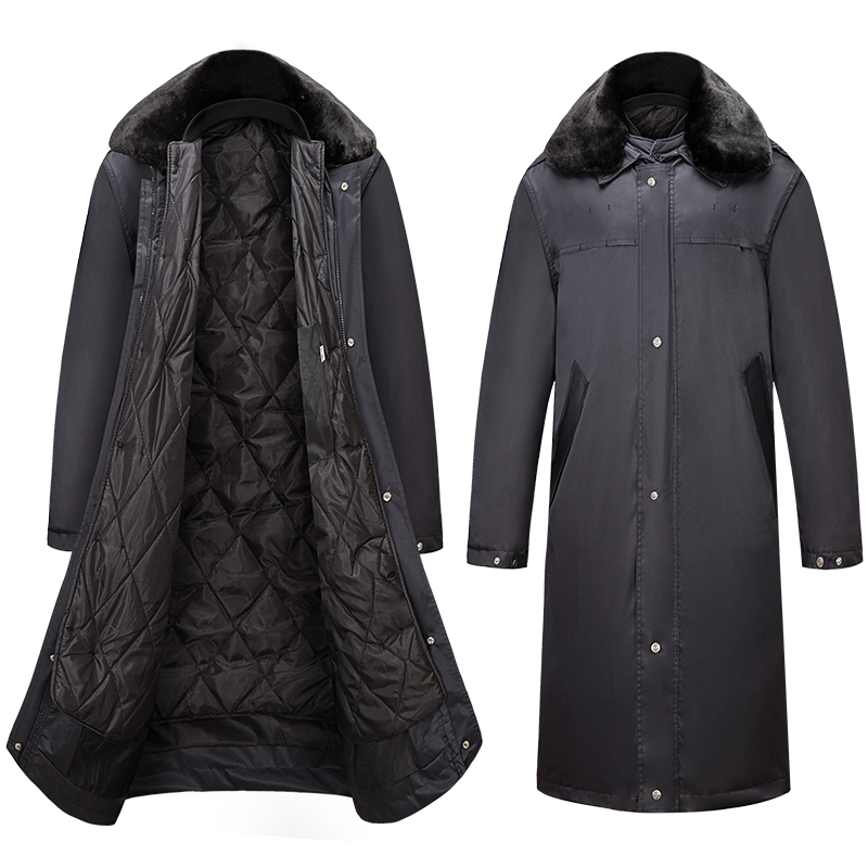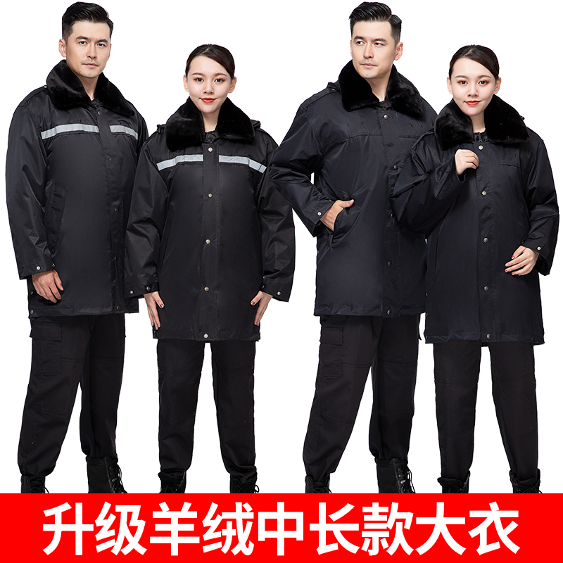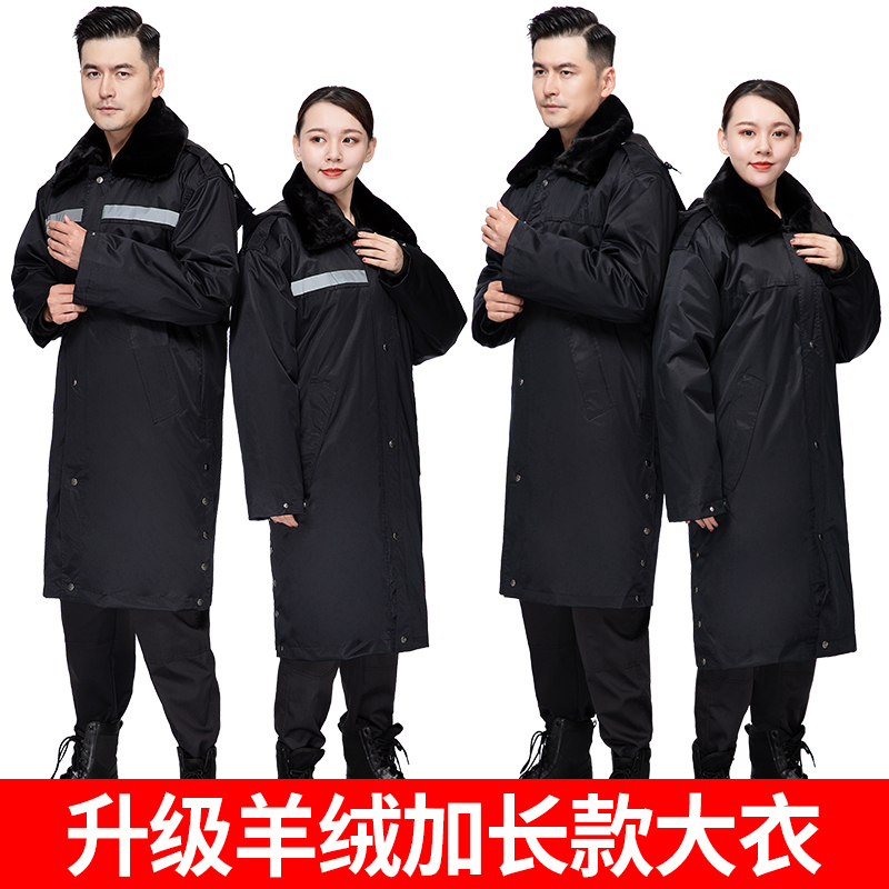 Military cotton Grand coat men's medium long winter thickened cold storage Anti-cold working clothes sheep plush labor wool padded jacket security coat of clothing