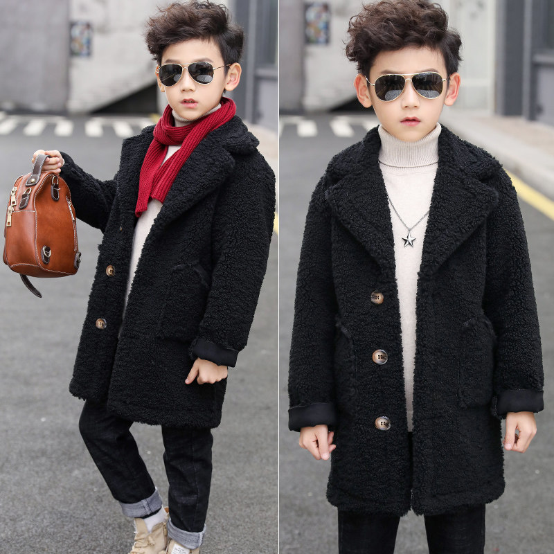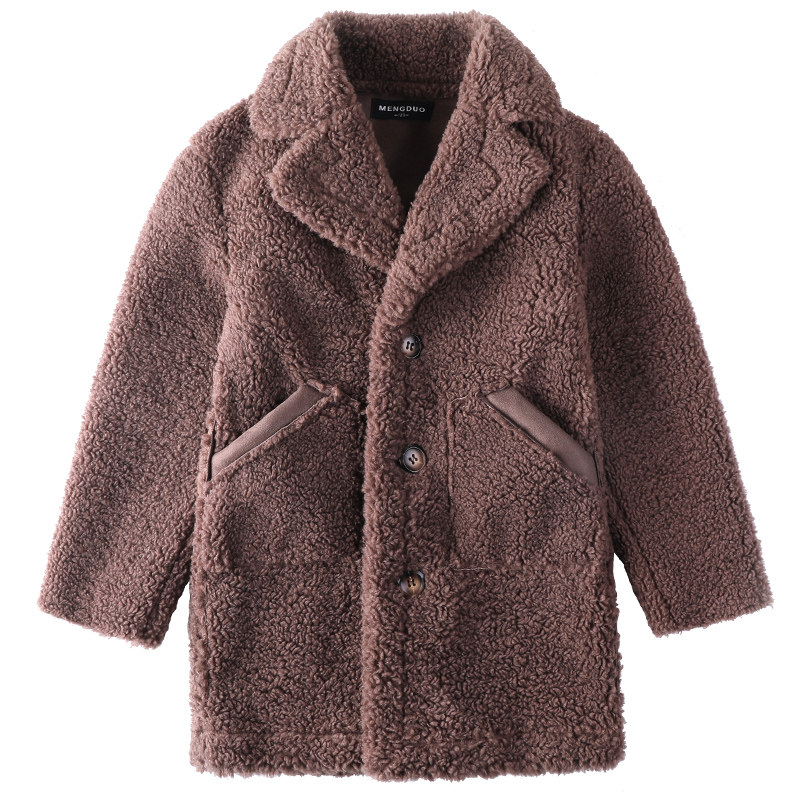 Boy lamb sweater, great coat 2021 Winter new Korean version CUHK Scout wool One with a suede jacket gush.