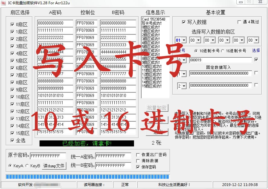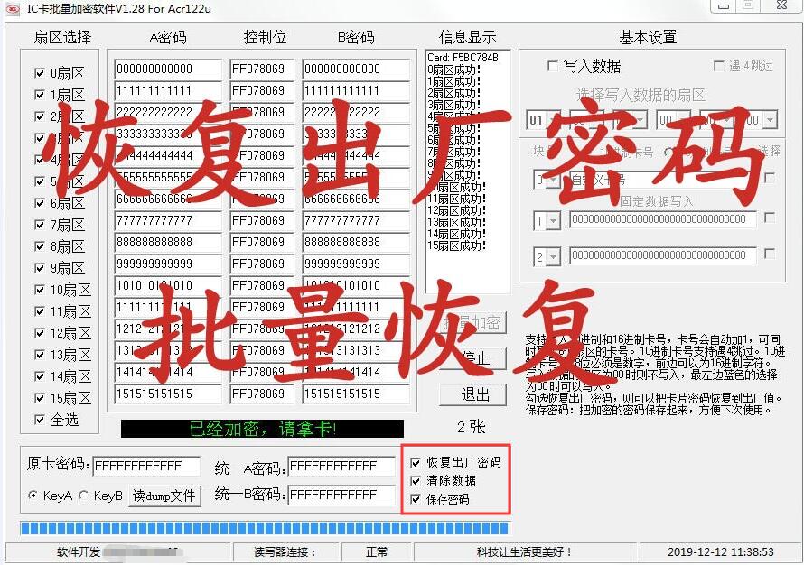 IC card encryption M1 card encryption Acr122u software bulk encryption fast encryption restore factory password