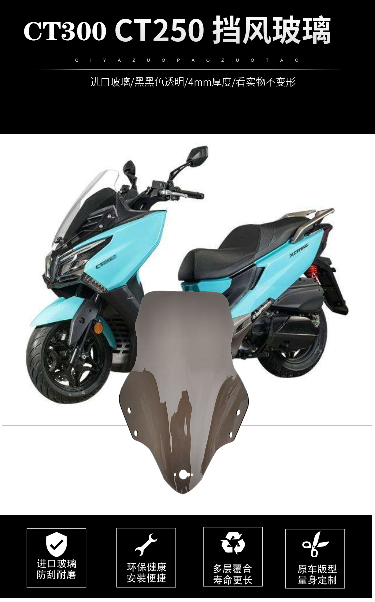 Suitable for Gwangyang CT250 300 modified front windshield CT300 plus high windshield black windshield